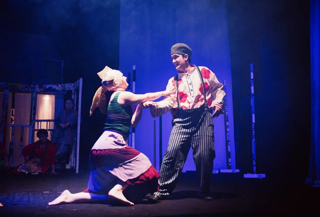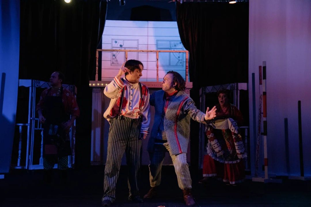 Жанр балагана диктует свои законы - это буйство красок, достойное цирка шапито, яркие, кричащие костюмы, словно сшитые из лоскутов. Деревенские жители напоминают оживших кукол из петрушечного вертепа: они поют, танцуют, играют, умнеют и глупеют прямо на глазах, представляя сюжет пьесы Нила Саймона совсем иначе, чем этого можно было ожидать.