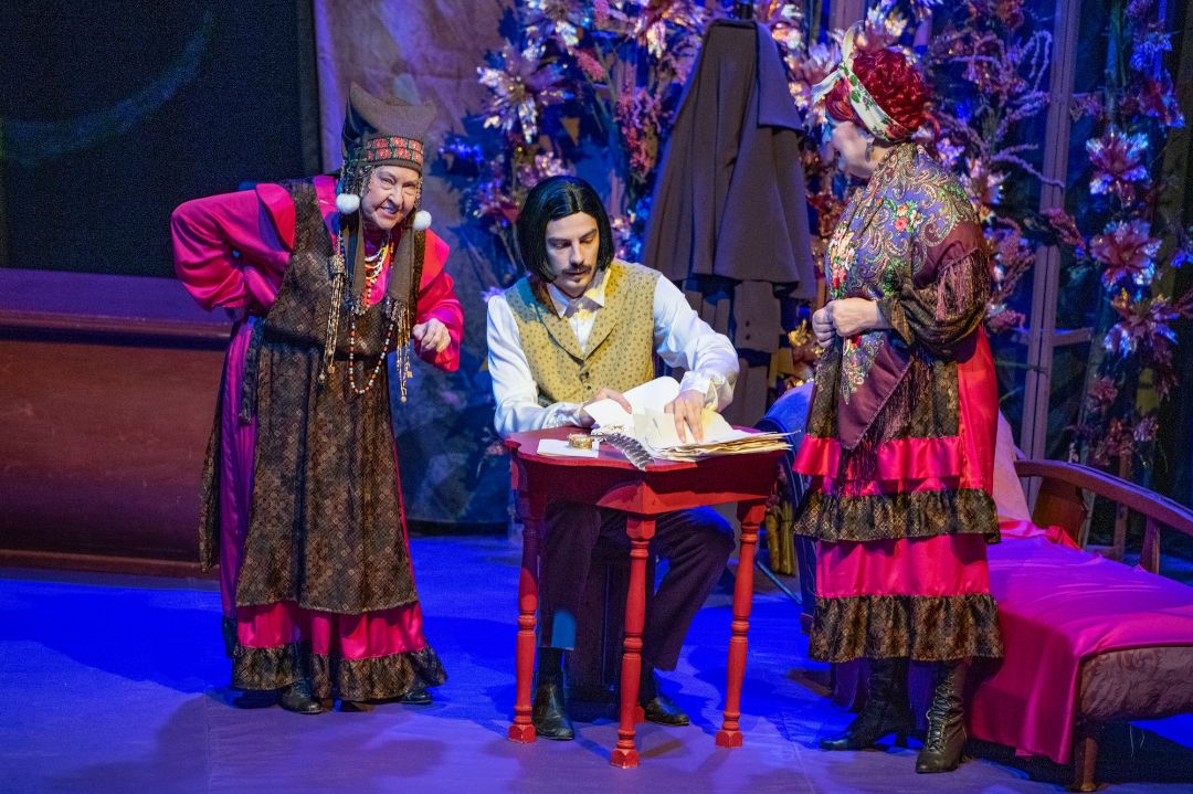 В нашем спектакле центральное место занимает персонаж Николая Васильевича Гоголя, которого, конечно же, нет в оригинальной повести. Его величественная фигура символизирует трагедию человека познавшего потусторонние миры, знающего высокие литературные стили и тонко чувствующего мистицизм, подарившего нам одно из величайших произведений русской литературы, но не нашедшего понимания у окружающих и познавшего ужас ранней смерти.